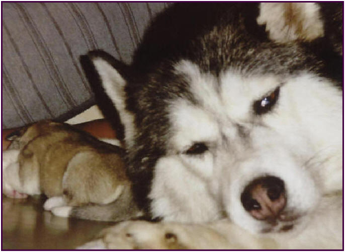 Začnu tím, kdo moje fenka Nikola je. Jmenuje se Nikol Polární expres. Koluje v ní z jedné poloviny kanadská pro mne neznámá krev. Z další čtvrtiny Arlington´s ( USA ) a poslední čtvrtina je maďarská krev. Když se narodila byla jedinou a poslední fenkou z vrhu. Byla tak veliká, že se ani nenarodila normální cestou. Šla císařským řezem, neměla v sobě moc života, ale asi jí bylo dáno, že tu má pro mě být. Čekala jsem si na ni, protože se mi ve stejnou dobu narodil jedináček kluk a já chtěla holku. Jak rostla byla stále silnější a bohužel i tlustější. Neustálé diety nic neřešily, stále to bylo stejné, jako u lidí, někdo je tlustý a někdo hubený.